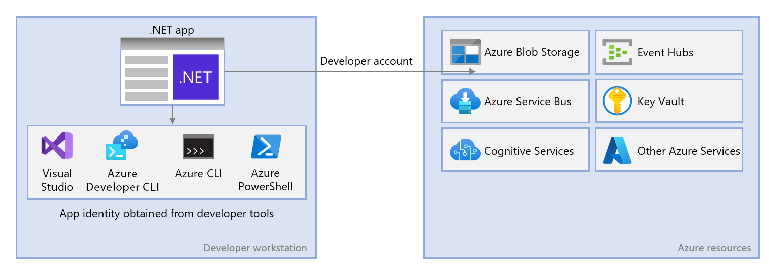For an app to authenticate to Azure during local development using the developer's Azure credentials, the developer must be signed-in to Azure from one of the following developer tools: